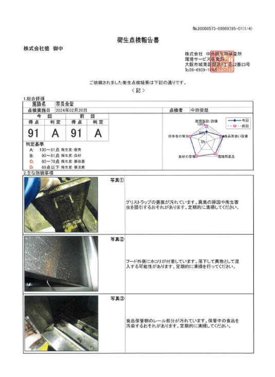 さらに食品衛生顧問・現場改善顧問による指導をそれぞれ毎月実施し、第三者機関(株式会社中央微生物検査所)による拭き取り検査をはじめ、百貨店をはじめとする得意先様からの施設検査を1カ月あたり3回以上実施しています。